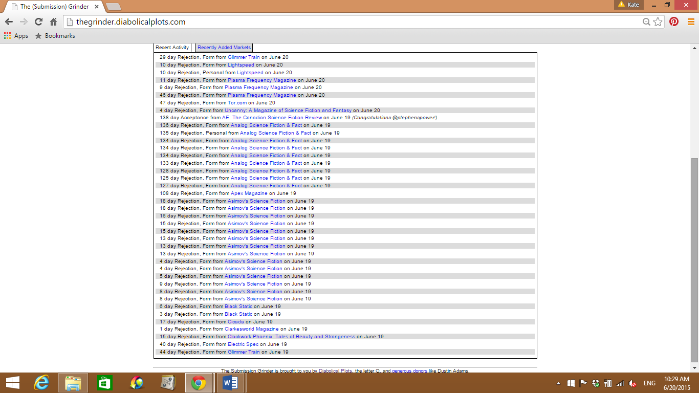 If you’re not familiar with it, take a look now at the front page of the Submission Grinder. Here’s what it looks like when last I checked: