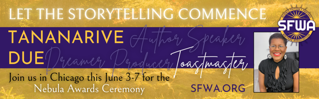 The Science Fiction and Fantasy Writers Association (SFWA)  is proud to announce that American Book Award, NAACP Image Award, and British Fantasy Award-winning author Tananarive Due will serve as Toastmaster for the 61st Annual Nebula Awards Conference happening in Chicago, IL from June 3-7. Previous Toastmasters include Erin Roberts, Sarah Gailey, Aydrea Walden, and Astronaut Dr. Kjell Lindgren.