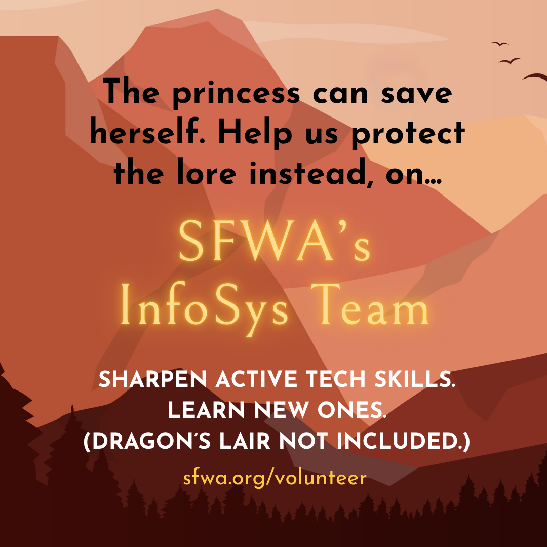 Not a SFWA member? Not a problem. Opportunities also arise for skills-training and mission support for anyone keen to support SFF writers. Pay attention to the skillset question in the intake form below, and we’ll see what we can do to provide options for mutual benefit.