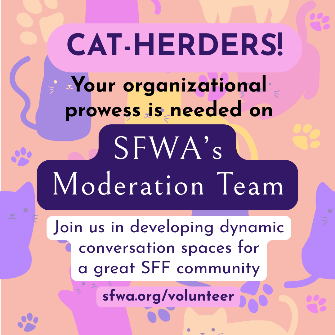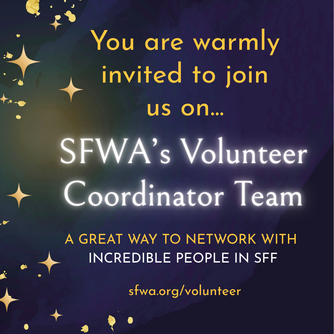 If you’re looking to join our team, we’d be thrilled to meet you. Many people volunteer to connect with fellow creators, acquire new skills, sharpen old ones, and contribute to their community. Most volunteer postings are for SFWA members, because these aren’t just passive positions. When you volunteer at SFWA, you’re making the fullest use of your membership to help us advance writer advocacy, defense, education, and outreach in the science fiction and fantasy genre. You get to be a part of the conversation.